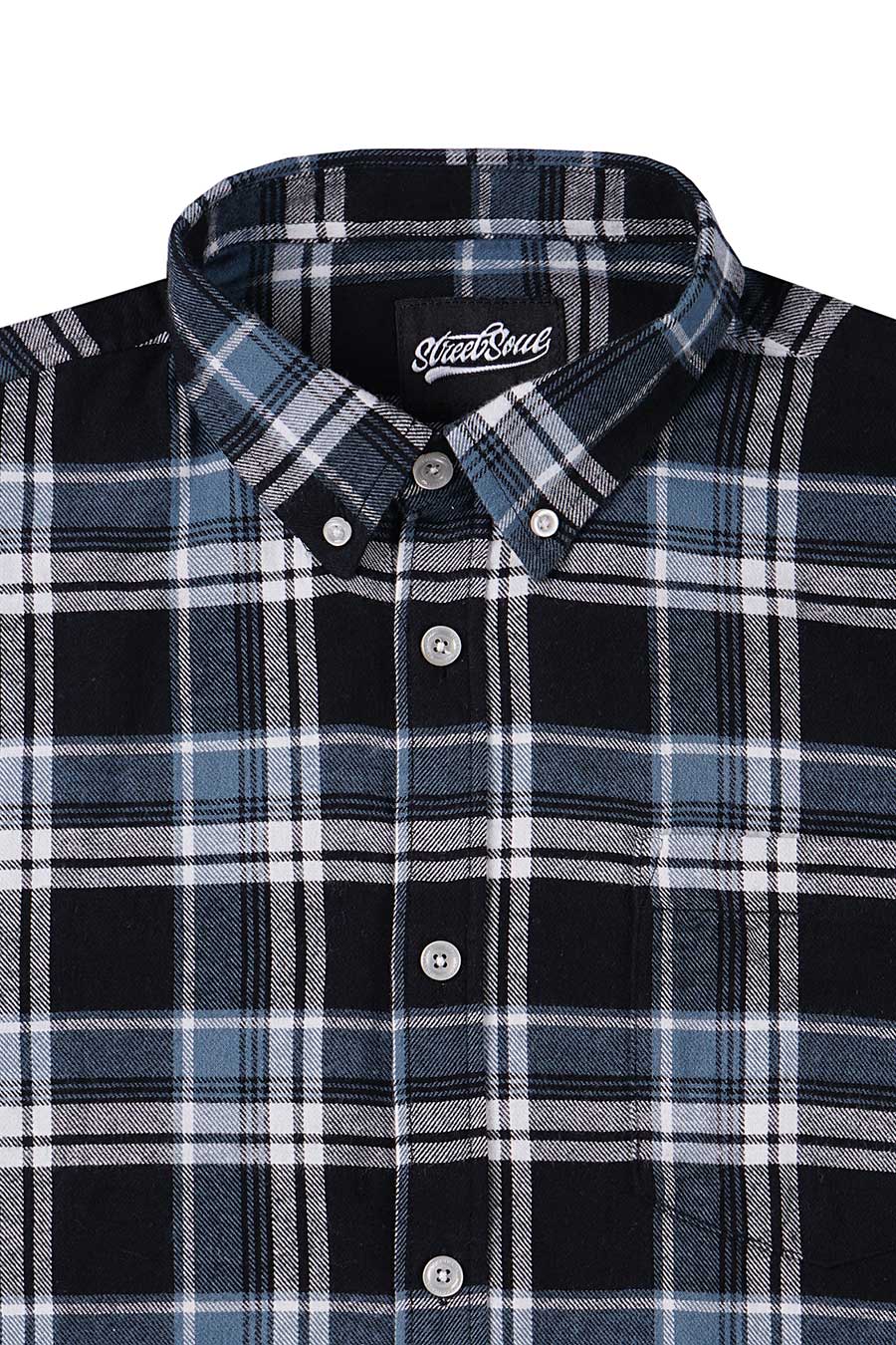 Рубашка мужская / Street Soul / Фланелевая рубашка в клетку Модель 25-39 / серо-чёрно-голубой / (L)